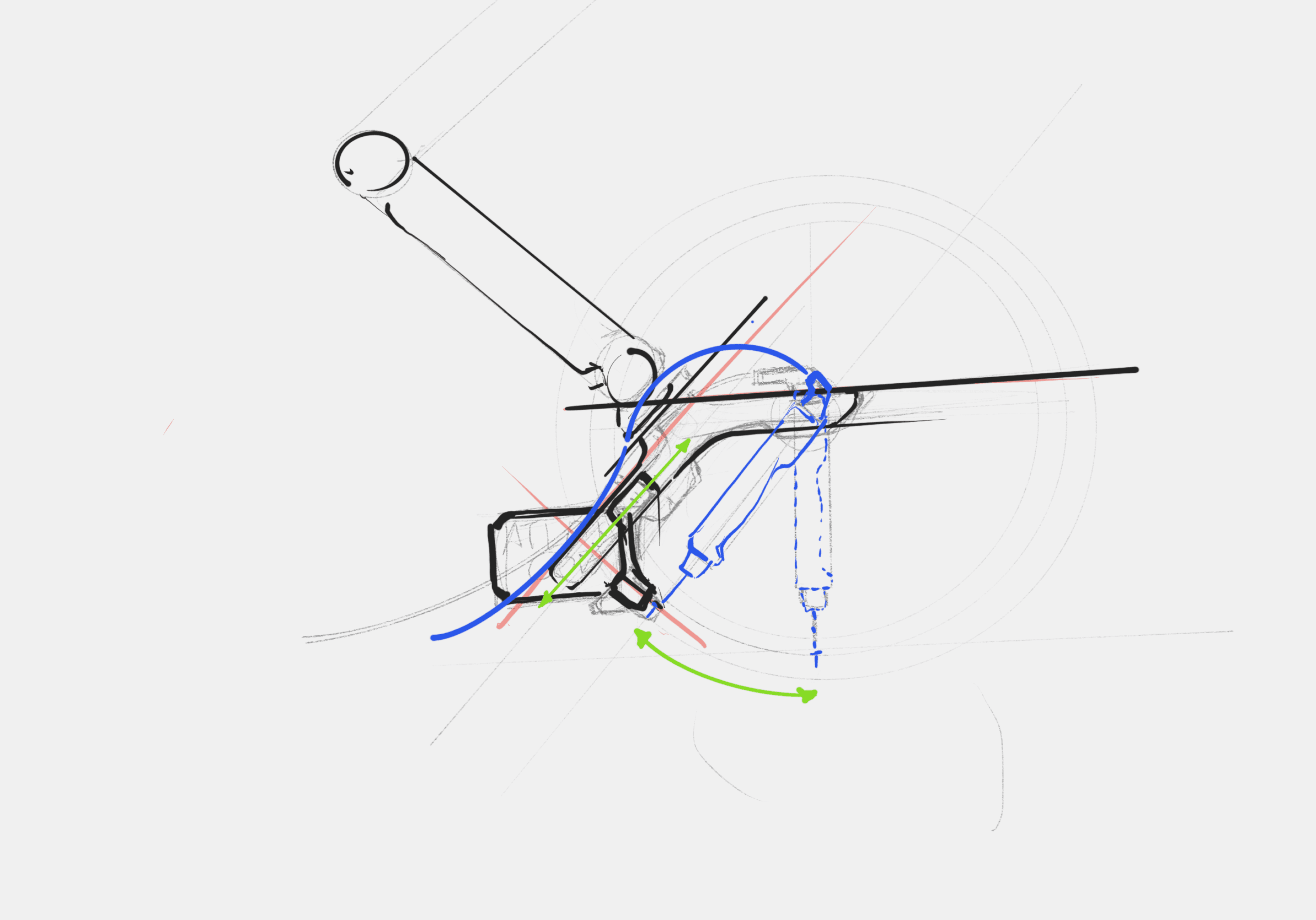 The final sketch that locked the mechanism and character in place before CAD and styling.